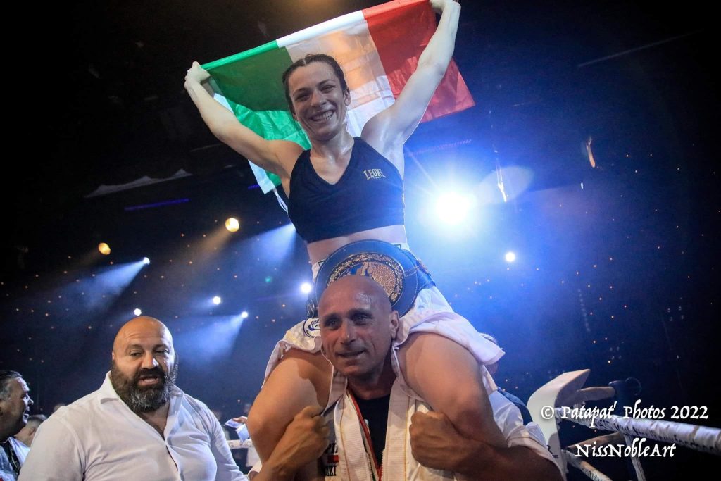 Nell'evento organizzato dalla Niss Noble Art al Casinò Ruhl di Nizza sabato 21 maggio 2022 Annalisa Brozzi (4-2-0) si è subito imposta sulla rivale nonostante avesse tutto il pubblico francese contro di lei. In un match difficile (l'avversaria combatte in guardia mancina, mentre Anna Lisa usa la guardia ordinaria) ma studiato nei dettagli (si erano già affrontate da dilettanti), già dal primo round ha punito l'avversaria con un atterramento per poi concludere la pratica alla seconda ripresa, guadagnando meritatamente la cintura.